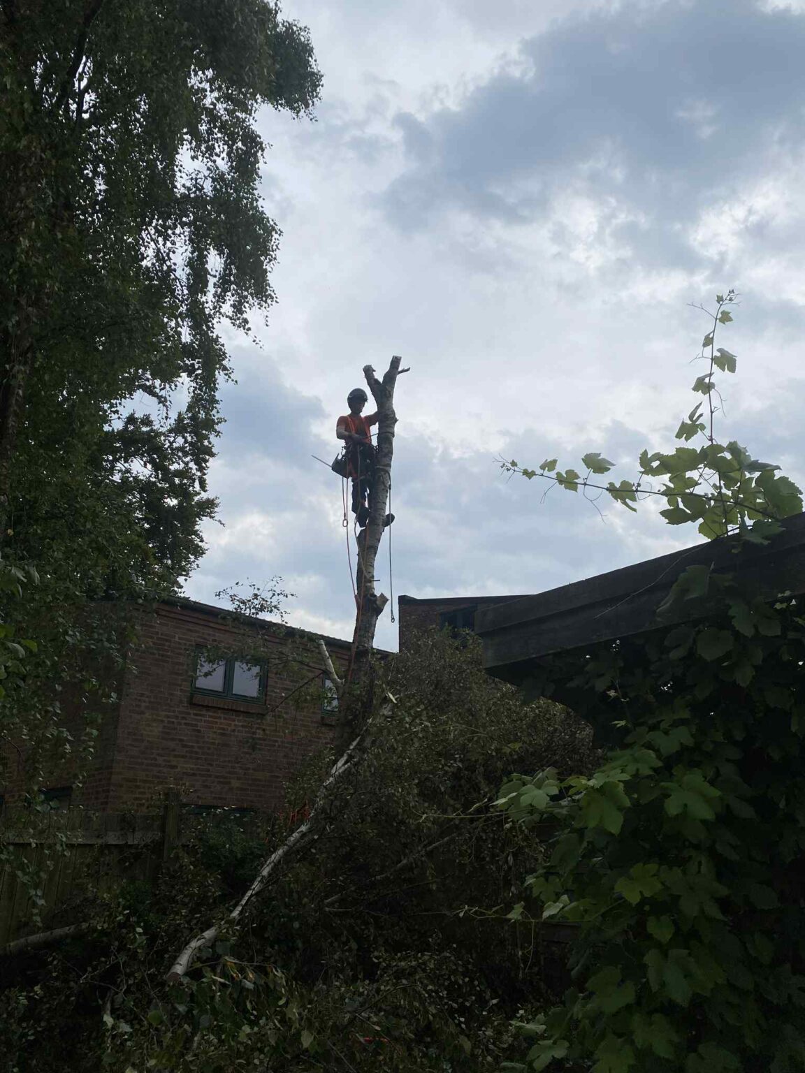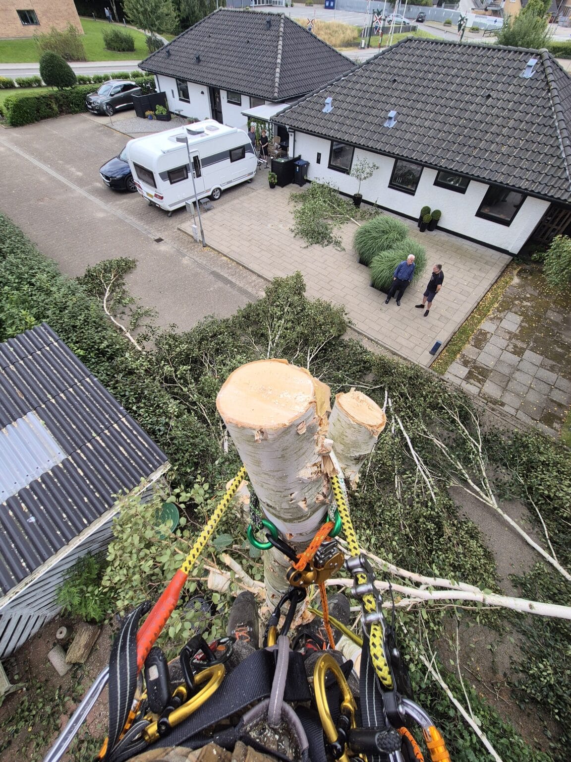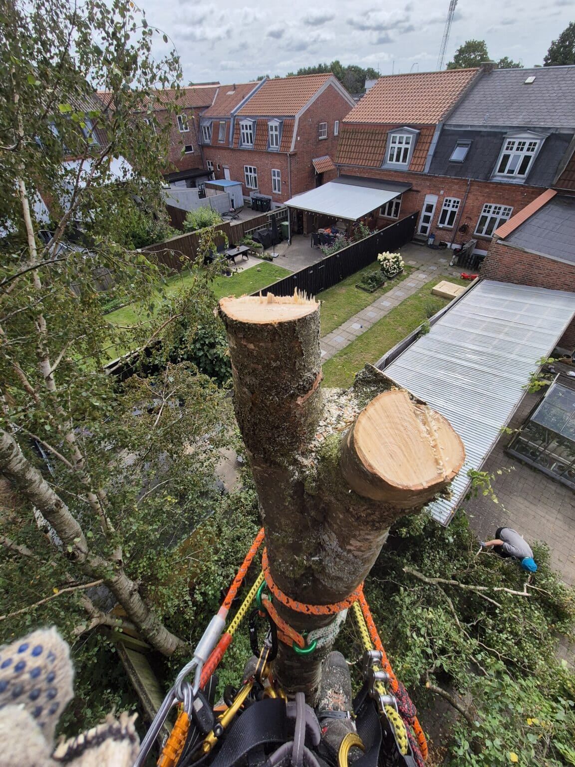 • Topkapning er en effektiv løsning, når træet skal fældes på steder med begrænset plads. Ved at klatre op og skære træet i sektioner sikrer vi en sikker og kontrolleret nedtagning uden at skade omgivelserne.